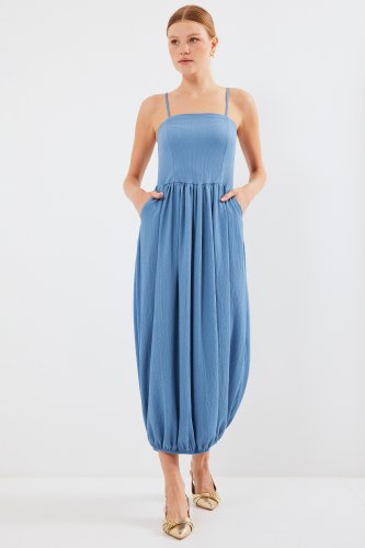 Kadın uzun kollu kare yakalı gipeli uzun trikoton elbise