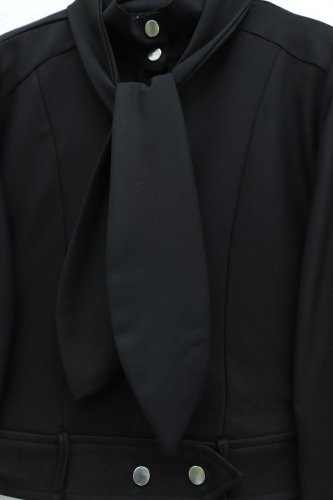 Gizli Düğmeli Fular Detaylı Etekli Diagonal Takım Siyah