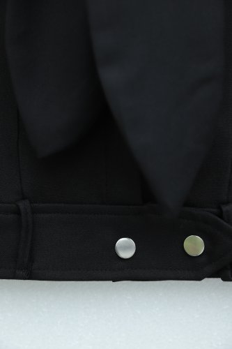 • Gizli Düğmeli Fular Detaylı Etekli Diagonal Takım Siyah