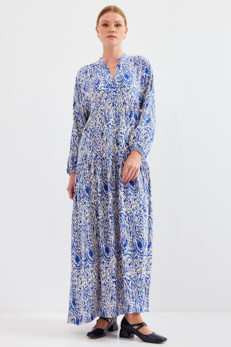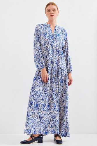 • Desenli Saks Viskon Tesettür Elbise 2423
